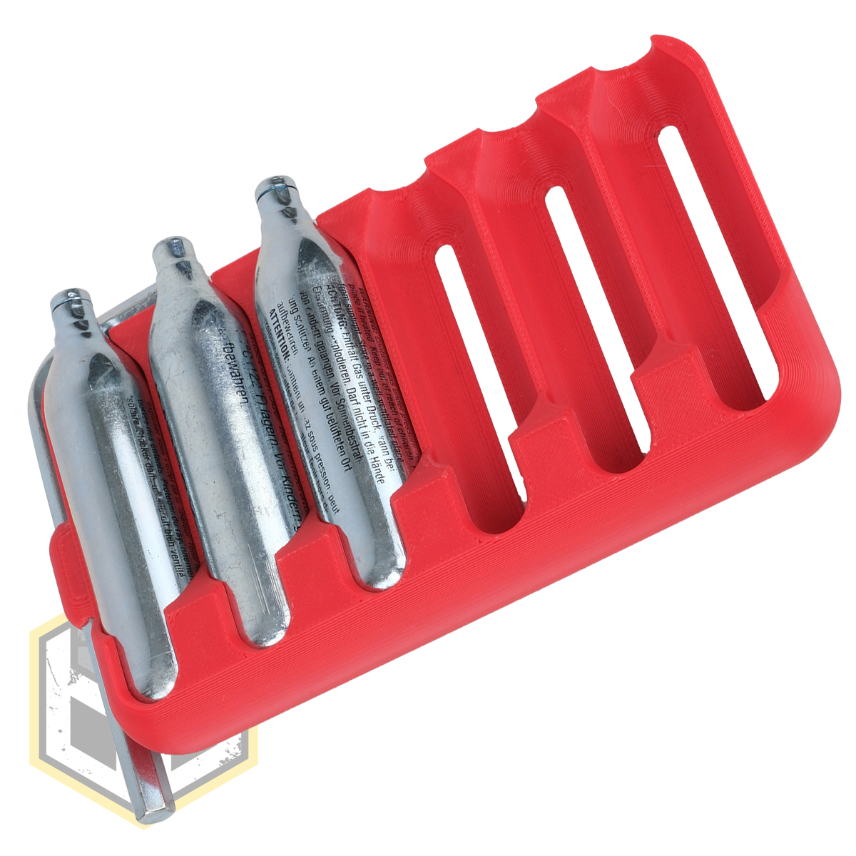 This 12g CO2 Cartridge and Hex Key Holder Red 6 is 3D printed using the latest technology.