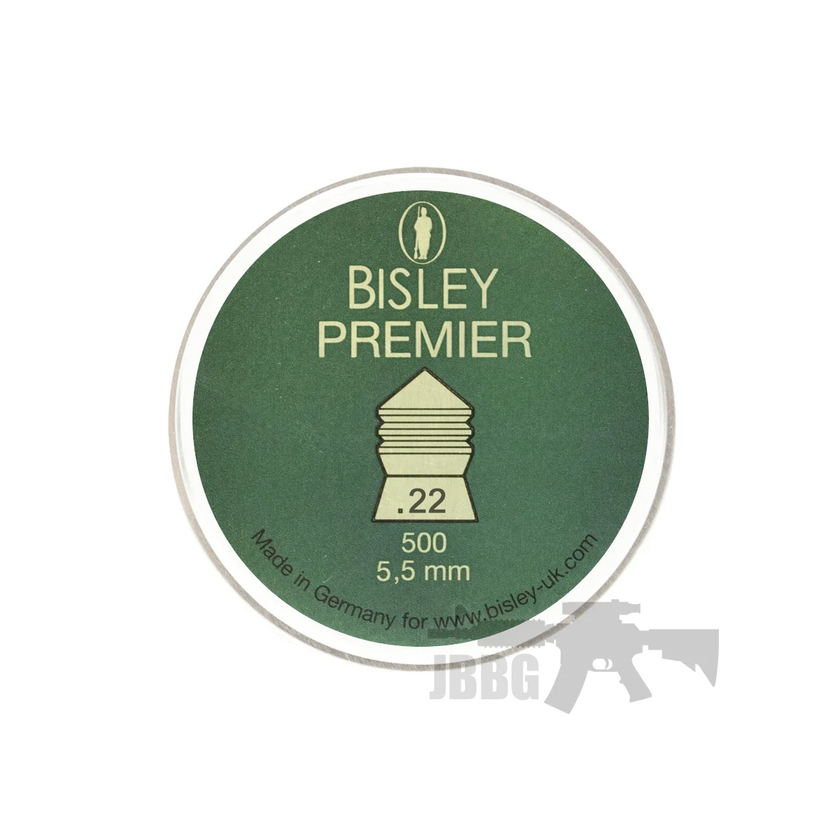 This is a tin of 200 5.5 mm .22 Bisley Premier Pellets that are heavy accurate hunting pellet for medium ranges. High impact and penetration with maximum shock effect. Smooth with blood grooves for the ultimate hunting pellet.