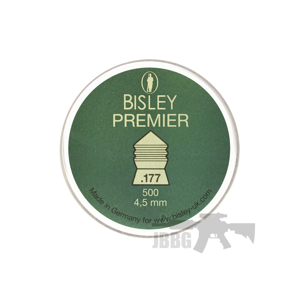 This is a tin of 500 4.5 mm .177 Bisley Premier Pellets that are heavy accurate hunting pellet for medium ranges. High impact and penetration with maximum shock effect. Smooth with blood grooves for the ultimat huintiong pellet.