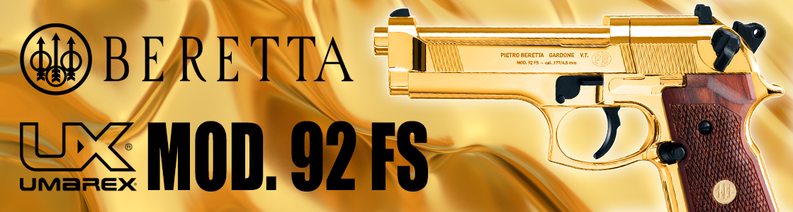 This is the Beretta M92 FS 24K Gold Plated Air Pistol from Umarex.