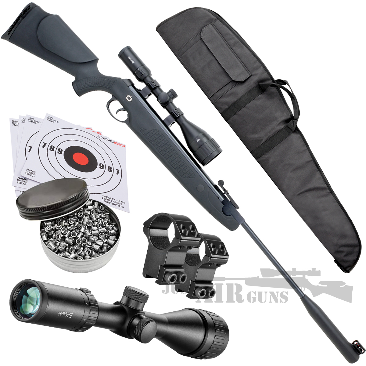 This is an exclusive bundle offer from Just Air Guns. The list of products shown on this page is included in this unique set. It is designed to give you a superior shooting experience and the peace of mind that everything will fit and work together.