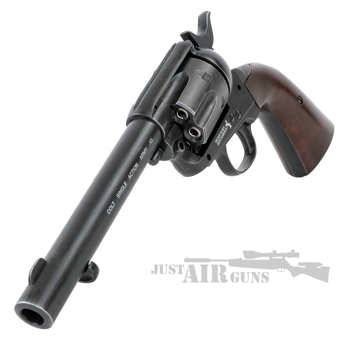 This is the Colt SAA CO2 Antiqued Black Revolver. It is a .177 calibre Colt 1873 Single Action Army model air pistol in antiqued black.