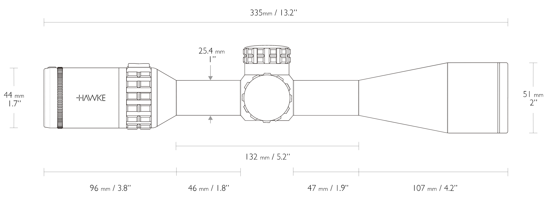 All reticle measurements are Mil spaced and offer 1 Mil, 0.5 Mil and 0.25 Mil brackets for range finding. Every second Mil spacing on the lower section is numbered to ensure quick and easy acquisition of target and ease of reference.