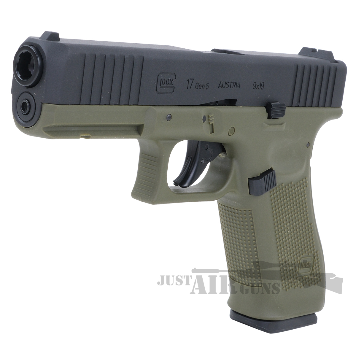 The Glock 17 Gen5 Battlefield Green CO2 Blowback Air Pistol is a versatile and realistic airgun that offers an unparalleled shooting experience. Whether for training or fun, this air pistol delivers the performance and authenticity you expect from a Glock replica.