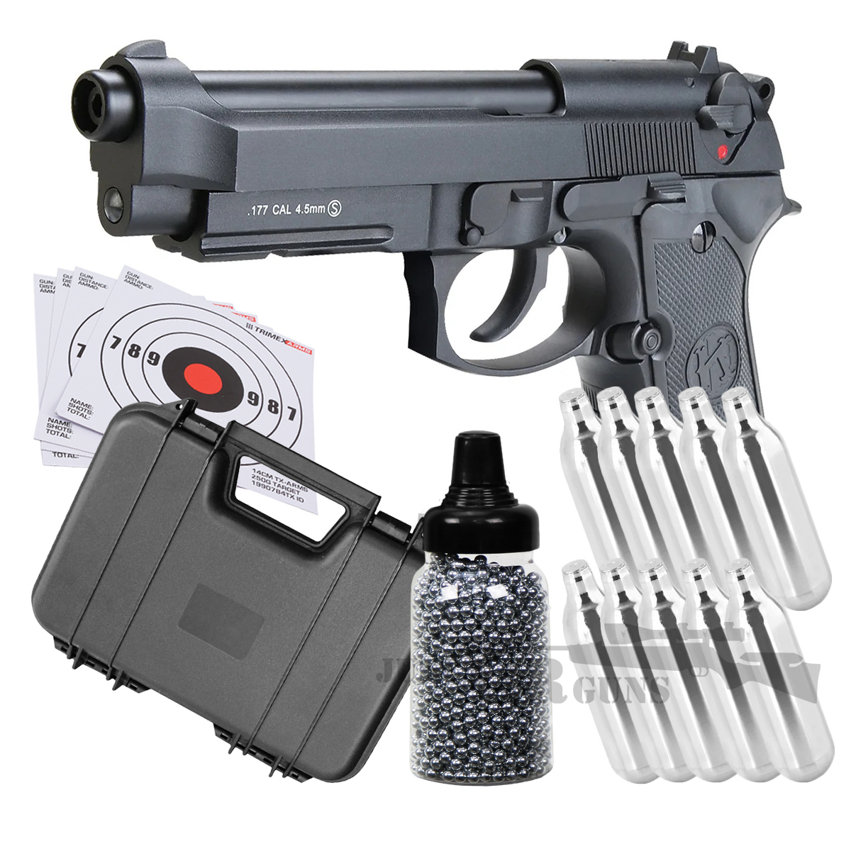 This is the KL M92 Co2 Black Blowback Air Pistol Bundle Set at Just Air Guns.