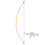 Starter kit for kids (Youth) to learn archery. Ergonomically shaped handle with comma guide, ideal for universal – left- and right-handed archers. Elements are made of flexible fibreglass, and this set is complete with; 2 Arrows, a Belt Clip, a Forearm Protector, a Finger Guard and a Paper Target.