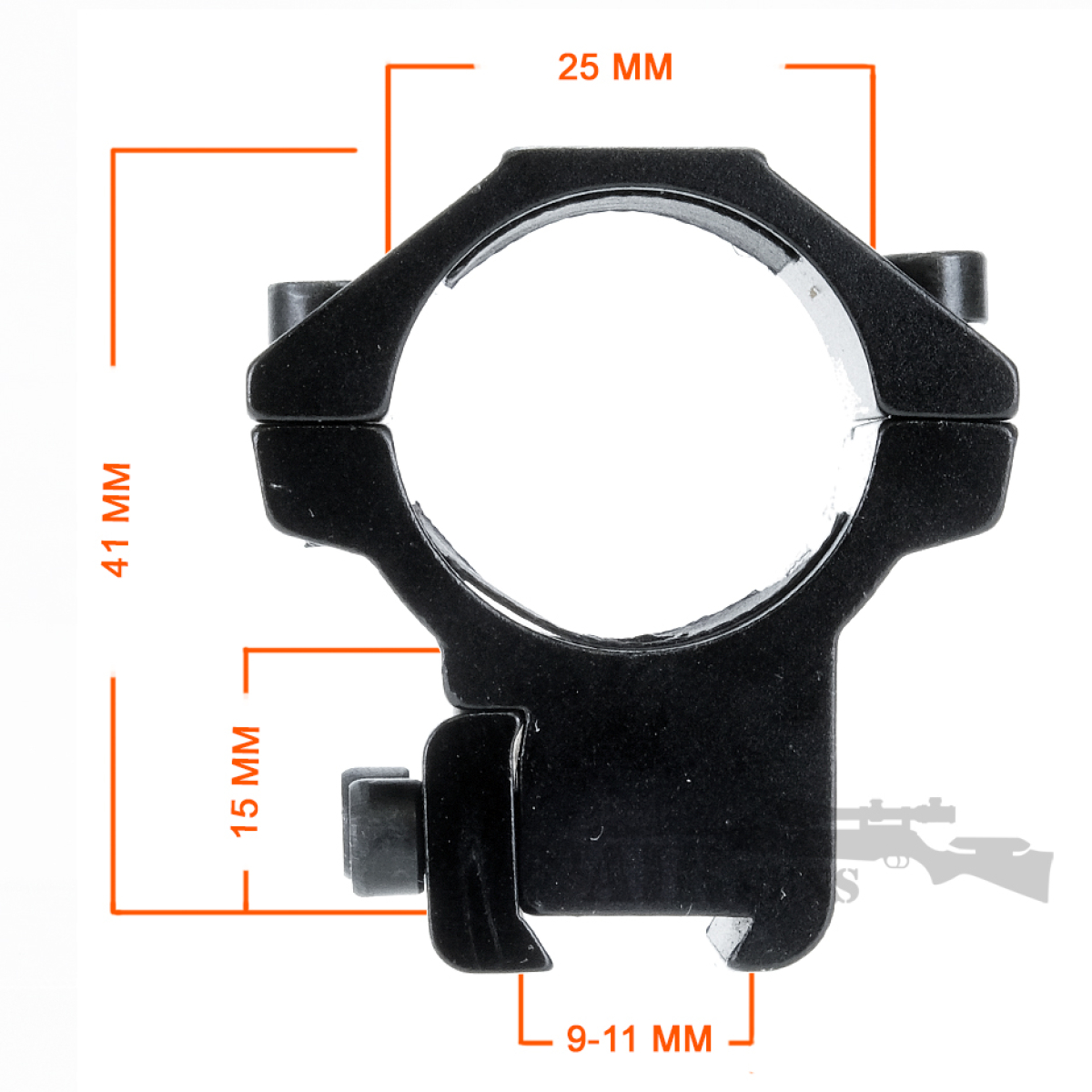 This mount set fits most air rifle scopes and is complete with a hex key wrench (Included). The stander position of these scope mounts is perfect for most beginners and intermediate shooters. With full metal construction and dual mounting fixings, these TX scope mounts are designed to give added stability. The rear scope mount ring has a locking bottom boult that can be used with some air rifles that have a hole in the top rail, this holds the scope and stops it from sliding backwards or forward. If you don’t have this feature on your air rifle then simply leave it inside the mount and do not drop it into the downward position. For full dimensions please see the dimensions image in the images of this product.