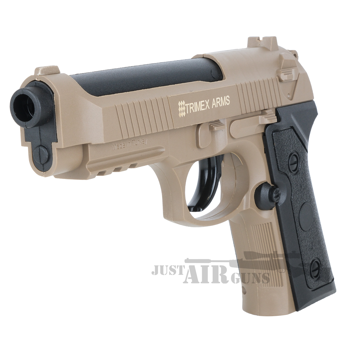 This is the new TX92 Co2 NBB Air Pistol Tan from Trimex Arms. Grab yours today, and remember your Co2 and metal BBs.
